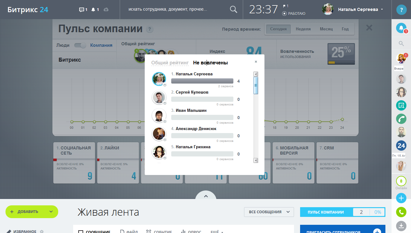 Бесплатный «облачный» сервис для небольшой компании до 12 сотрудников. Тариф содержит базовый набор рабочих инструментов для внутренних коммуникаций компании, управления задачами и проектами, совместной работы с небольшим объемом документов, планирования рабочего времени, ведения базы клиентов и обработки заказов из интернет-магазина в CRM.Проект+ (990 руб/мес)